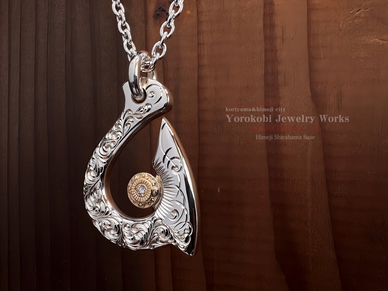 Fish Hook Pendant 2025-02 Sun Metal(SV/K18YG)総手彫り